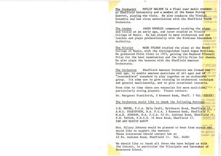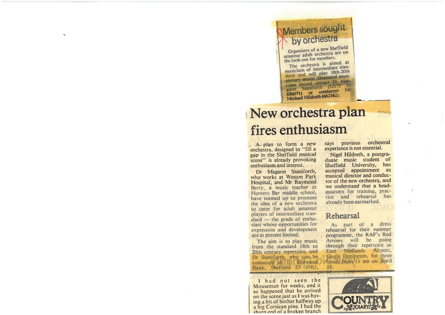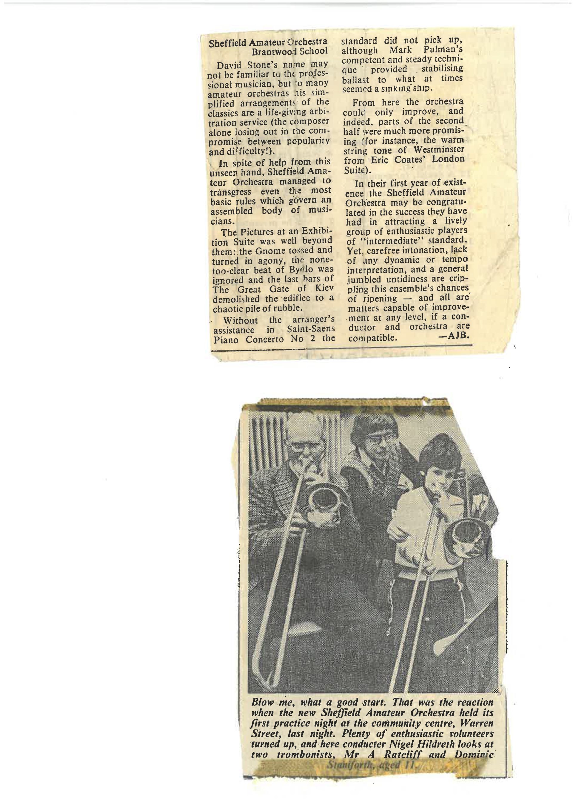 Below are scans of some fascinating photos, news articles and documents from the late 1970s about the new Sheffield Amateur Orchestra given to us by Margaret at the reunion event in July 2018.