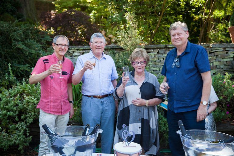Margaret, with Martin Lightowler and former conductors Tony Ward and Nigel Hildreth, at the July 2018 Orchestra Reunion event: